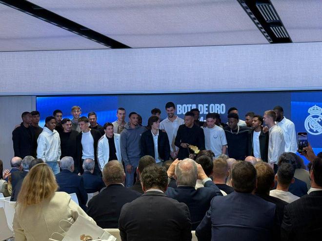 10月31日,姆巴佩在伯納烏領(lǐng)取了2024-25賽季歐洲金靴獎,皇馬全隊出席儀式。