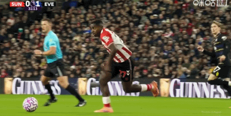 第46分鐘,勒費?;貍?,扎卡弧頂處低射破門扳平比分,桑德蘭1-1埃弗頓