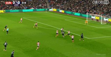 第15分鐘,恩迪亞耶過掉三人晃開角度起腳破門,埃弗頓1-0桑德蘭